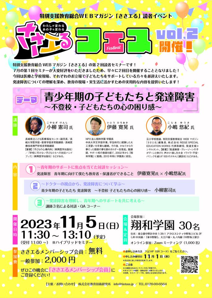 【青少年期の子どもたちと発達障害~不登校・子どもたちのこころの困り感~】ささエるフェスVol.02(特別支援教育総合WEBマガジン「ささエる」読者イベント)